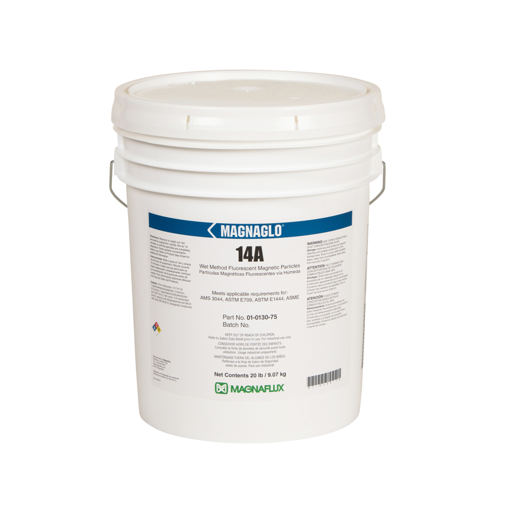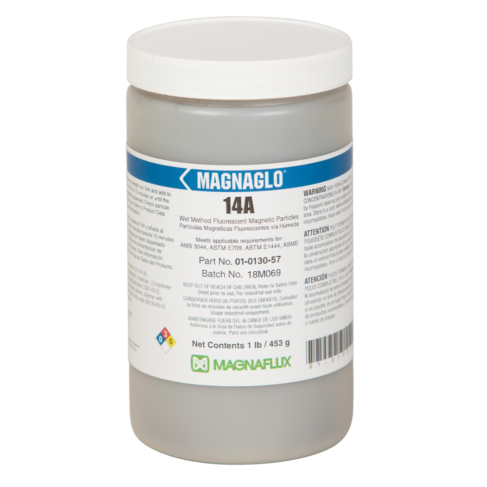 Designed with strong fluorescent properties, 14A magnetic powder is made with a carefully optimized range of particle sizes & shapes to ensure particles move quickly and easily to indications, while minimizing background and particle clumping. The result is faster inspections with better reliability and greater confidence.