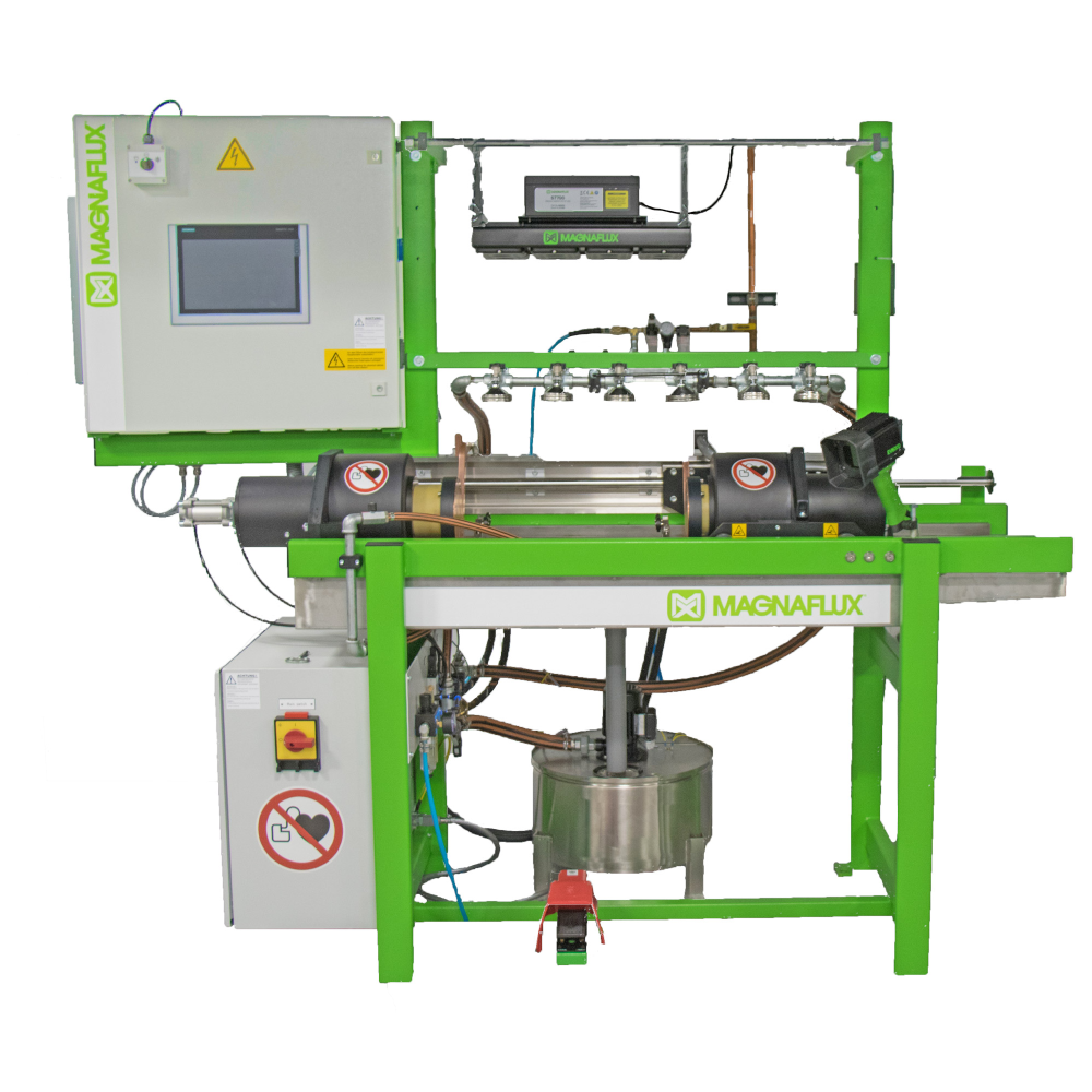 The Universal WE magnetic wet bench is multi-direction magnetic wet bench designed to completely magnetize the surfaceof parts up to 35 inches long in a single shot. Potentially cutting inspection time in half because the part can inspected in both directions at once. The Universal WE offers 200 – 2,000 Amps AC for contact shots and 1,500 – 15,000 Amp-turns AC for coil shots. The two outputs are independently adjustable to set each magnetic field, circular or longitudinal.