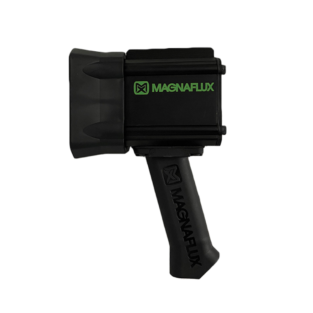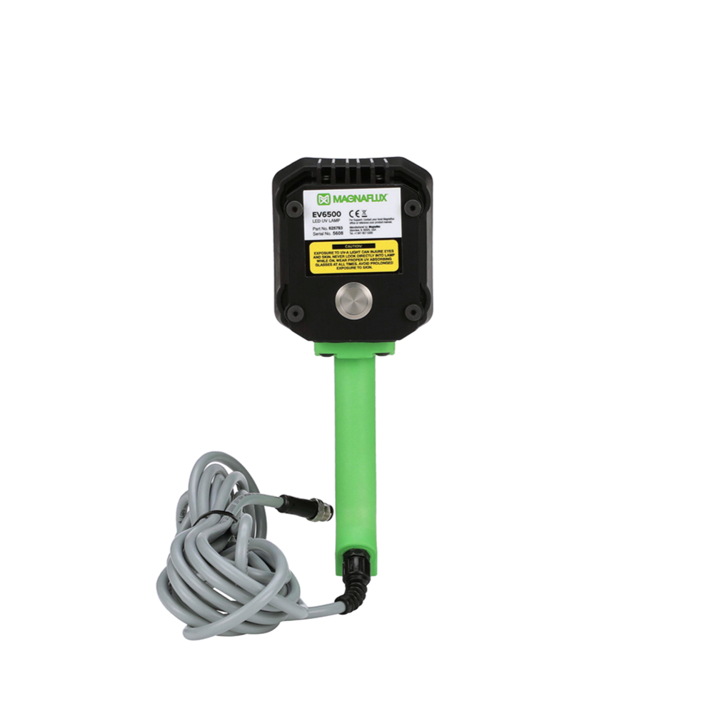 The EV6500 is a hand-held, portable LED UV lamp with built-in white light LEDs for non-destructive testing applications like fluorescent penetrant testing and fluorescent magnetic particle inspections.