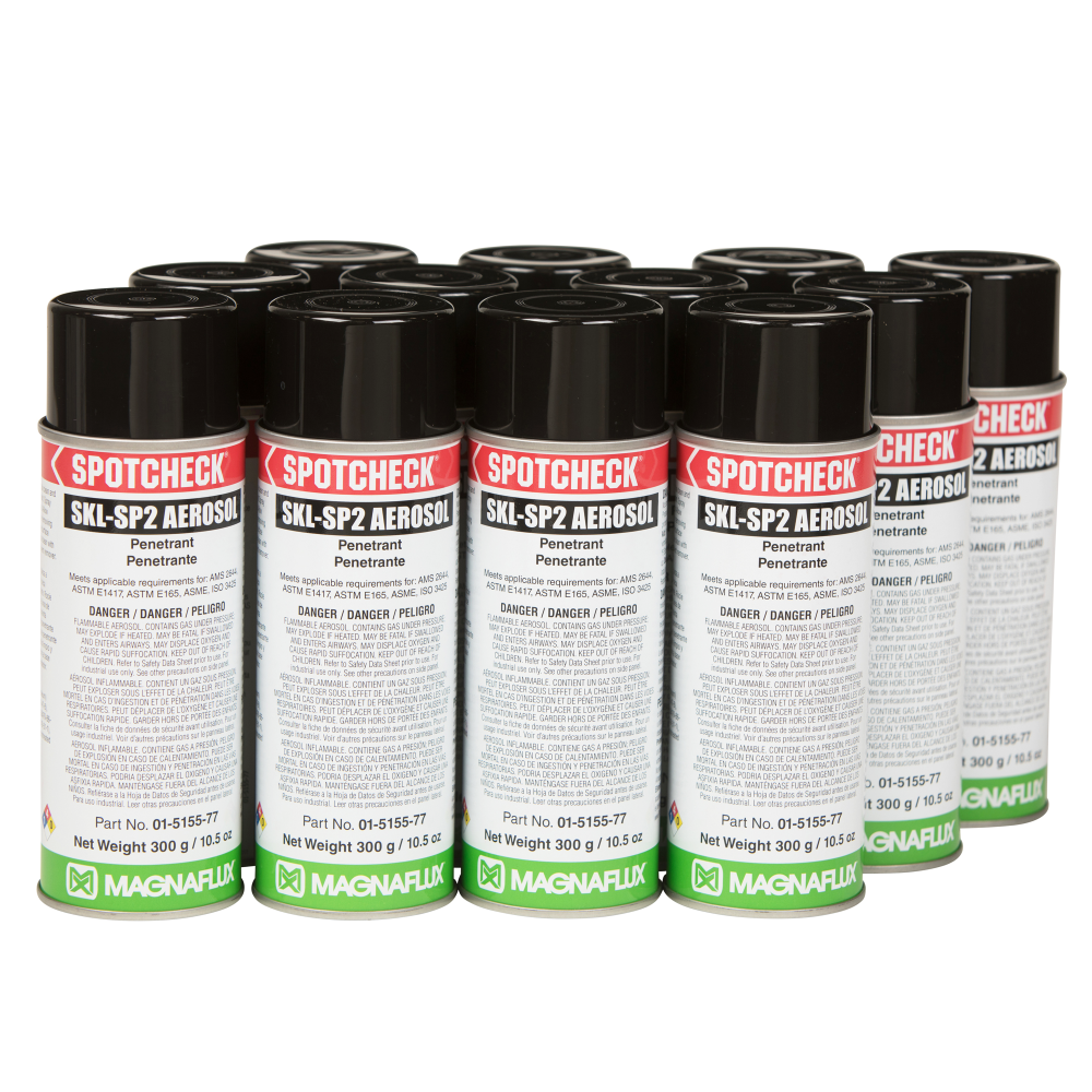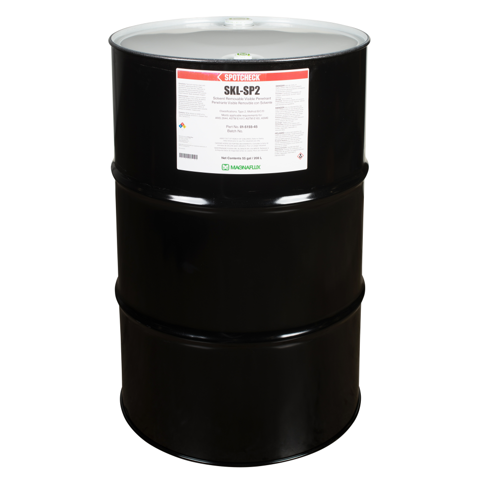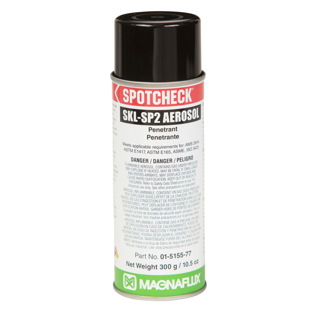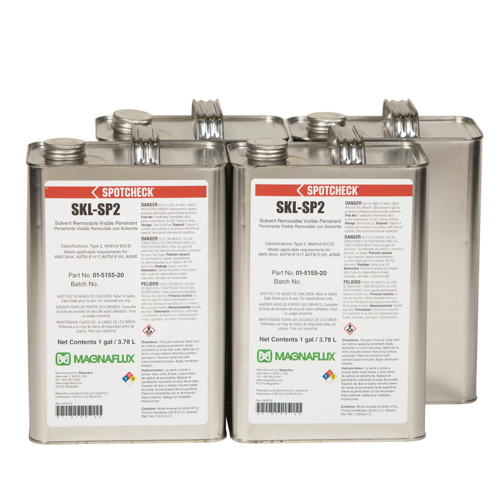 SKL-SP2 is a solvent removable visible red dye penetrant. SKL-SP2 locates surface-breaking discontinuities with a simple three-step process that is ideal for basic industrial nondestructive testing. SKL-SP2 features high-performance penetrating characteristics and produces clear vivid red indications.